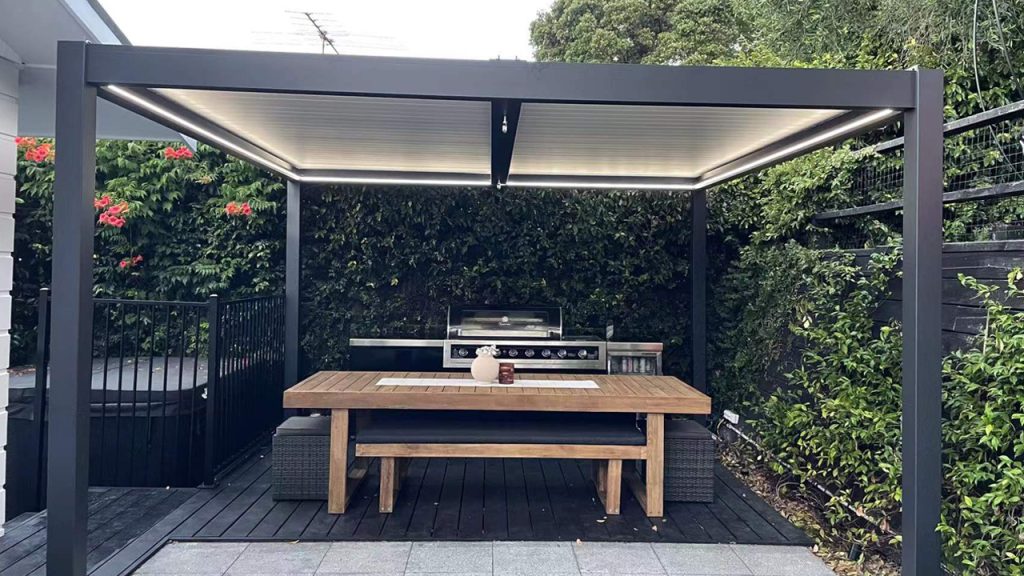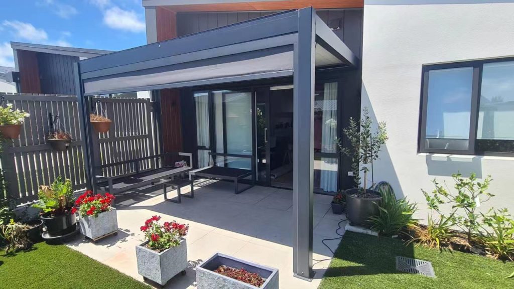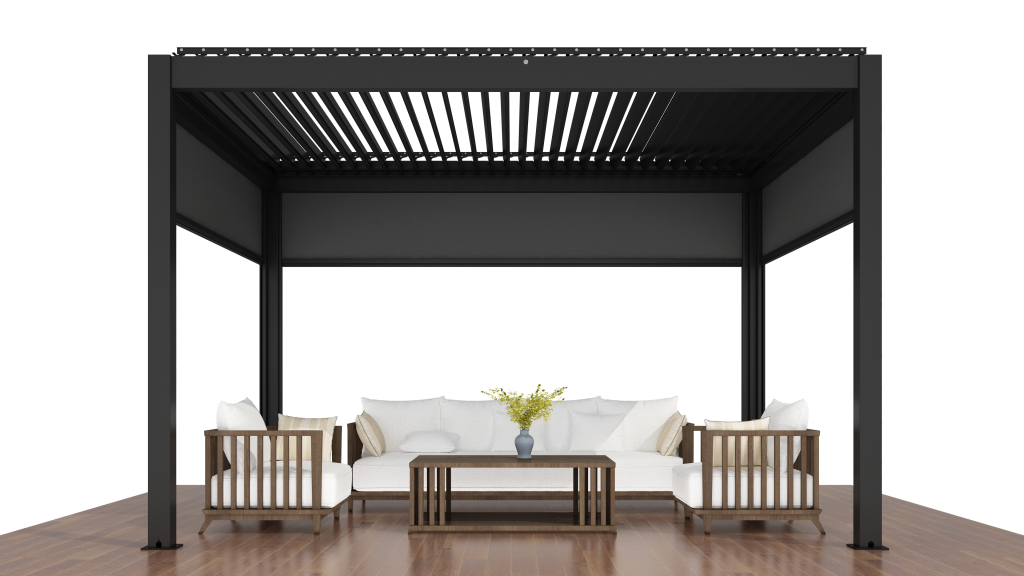 Underhållsfri pergola med pulverlakerad aluminium.