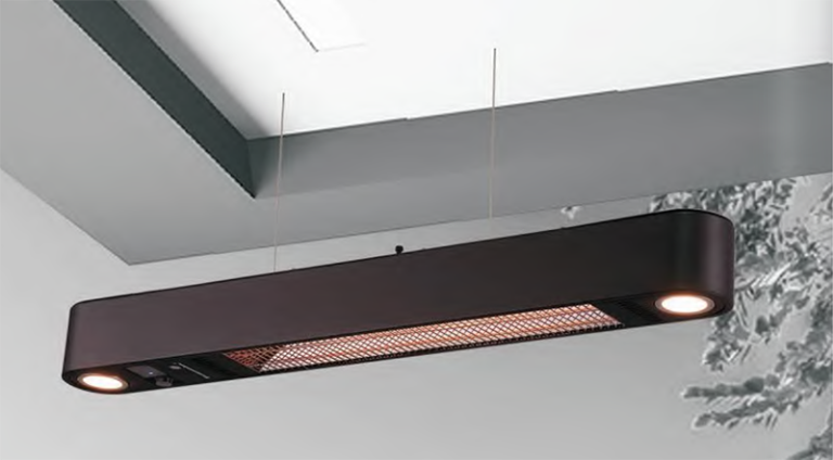 Förläng utekvällarna med en stilren värmelampa med belysning som ger skön värme under kyligare dagar. En perfekt lösning för att skapa en inbjudande atmosfär året runt. Lampan hängs upp på väggen.