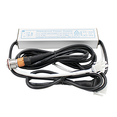 Transformator med startknapp till LED-slinga. Transformatorn ansluts i elboxen med snabbkoppling, i LED-slingan med wagoklämma