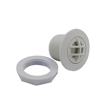 Returjet för cirkulationen, grå PVC med mutter. Returjetset tätas med silikon på baksida bad innan mutter dras åt.