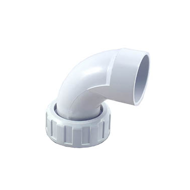 Pumpunion med 90gr vinkel i vit PVC, anslutning till 2″ slang