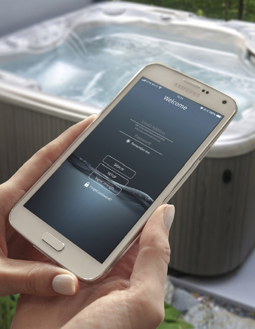 I din telefon kan du med ControlMySpa™ göra alla ändringar och inställningar i din app som du kan göra på kontrollpanelen i badet. Du kan läsa av och ändra temperatur, reningscykler, belysning och även läsa av ev. felkoder.
